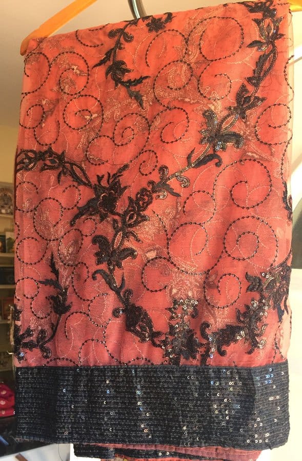 Sari preciosa de cocktail-fina y sofisticada con borde de perlas en color negro.